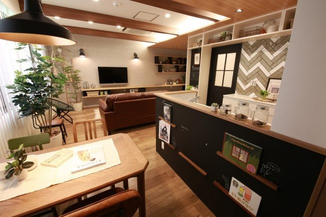家族の掲示板や、大容量の畳収納スペース、おうち図書館の様なディスプレイ本棚..etc