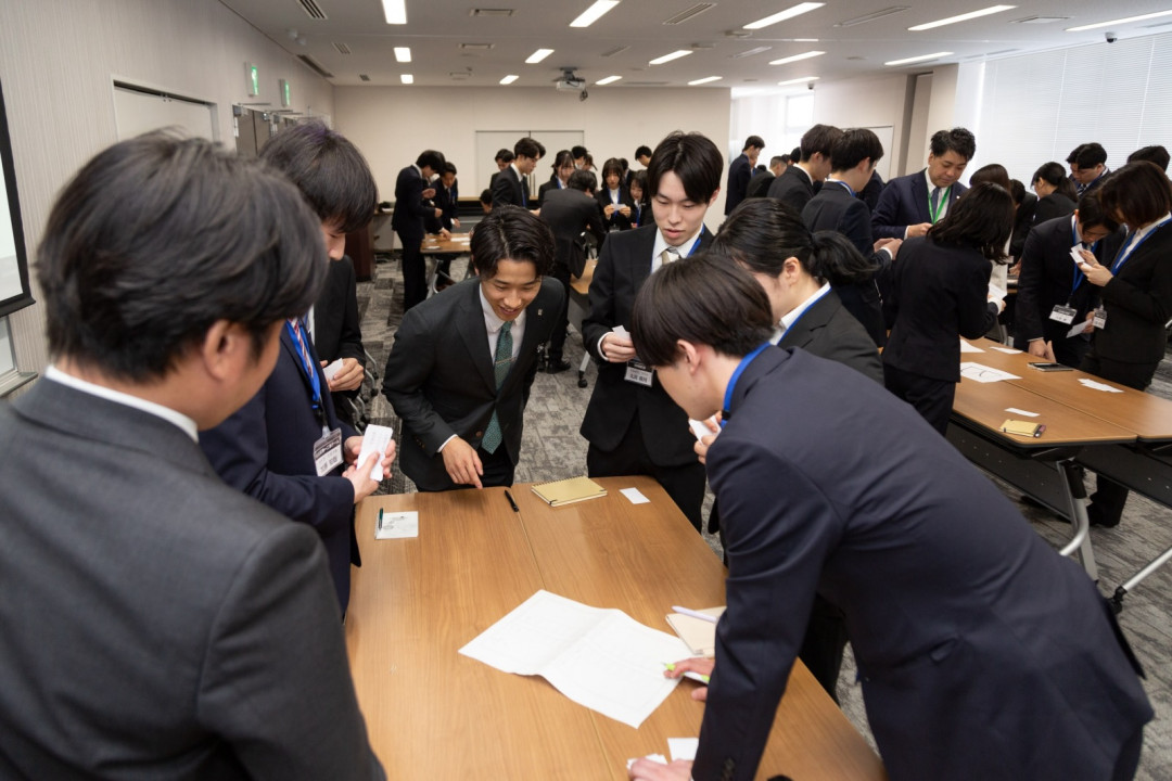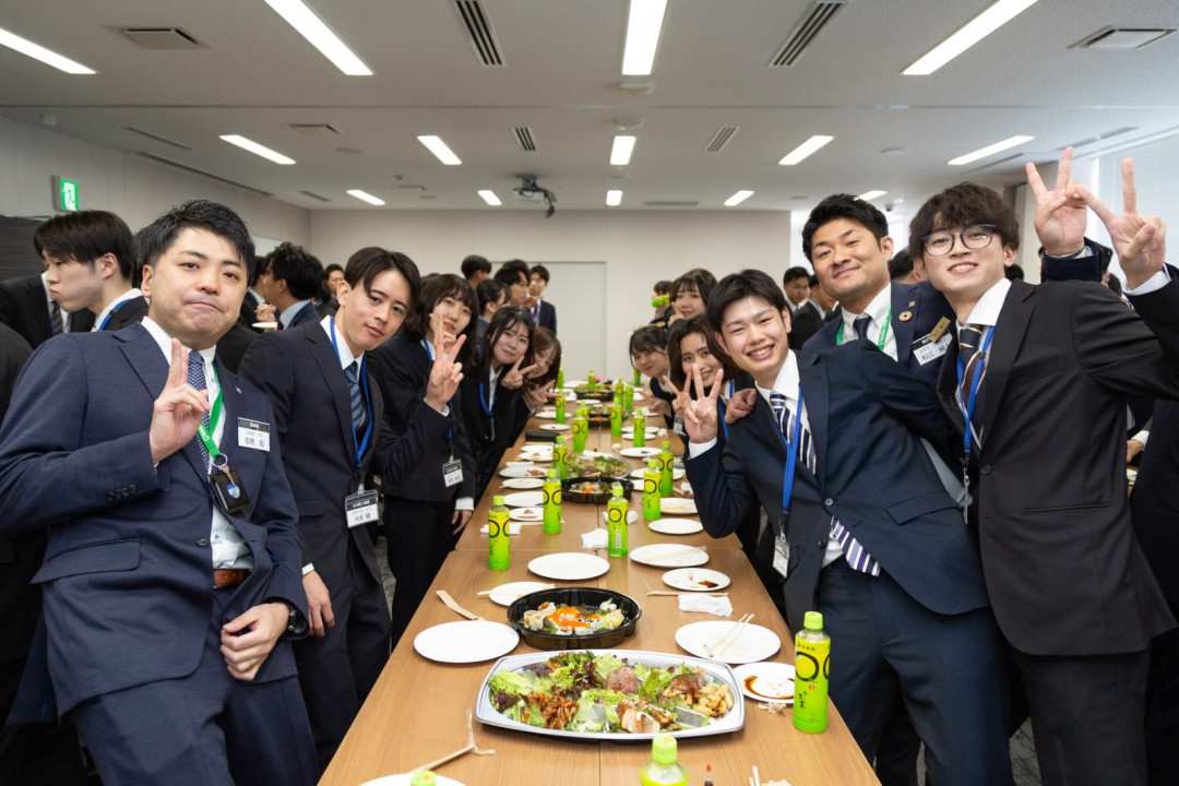 また、昼食は取締役や役員だけでなく、活躍している先輩社員も含めた立食パーティーが行われました。